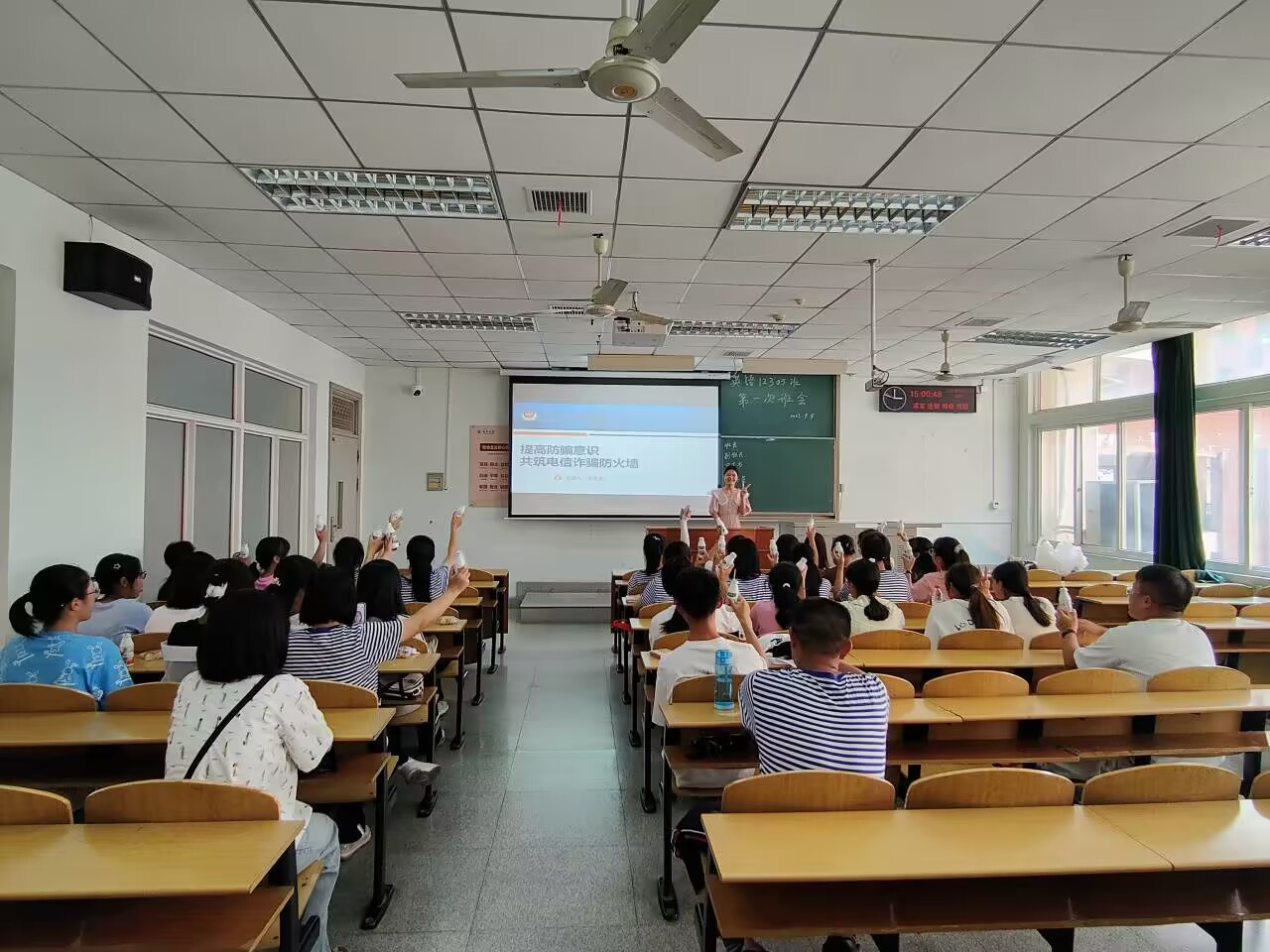 会议以诈骗案例分析、防诈骗安全常识宣传、防诈骗防范能力教育三个内容为重点,通过PPT讲解、案例视频观看的形式向同学们介绍“冒充熟人诈骗”、“冒充公检法诈骗”、“网络交易诈骗”、“情感诈骗”等常见的电信诈骗套路、受骗心理与防范意见。