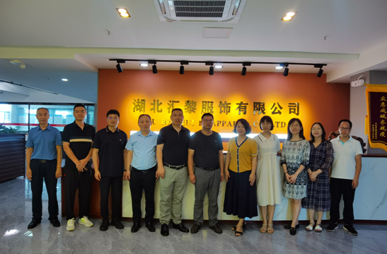(通讯员 刘慧)为助力地方外贸经济发展,建设商务英语系实习实践基地,应湖北汇黎公司邀请,7月11日上午,开云网页院长谈宏慧教授带领商务英语系师生15人走访荆州市公安县湖北汇黎服饰有限公司,公安县公共就业和人才服务中心主任陈震、公安县章庄铺镇长王政、汇黎公司党总支书记刘经玉和总经理助理文雯参加本次活动。